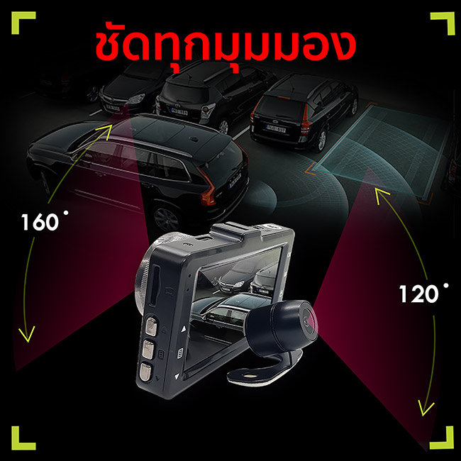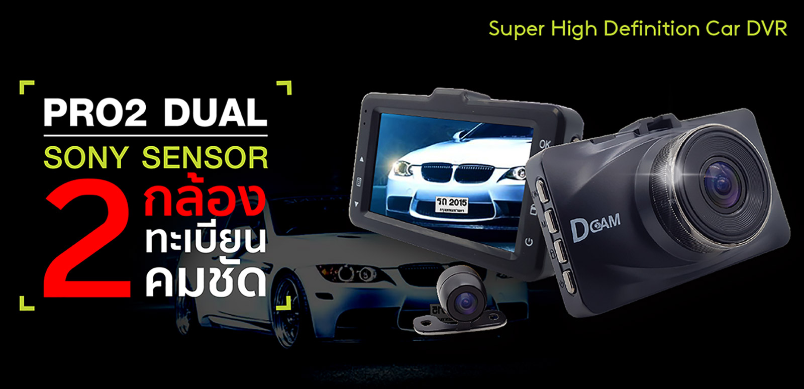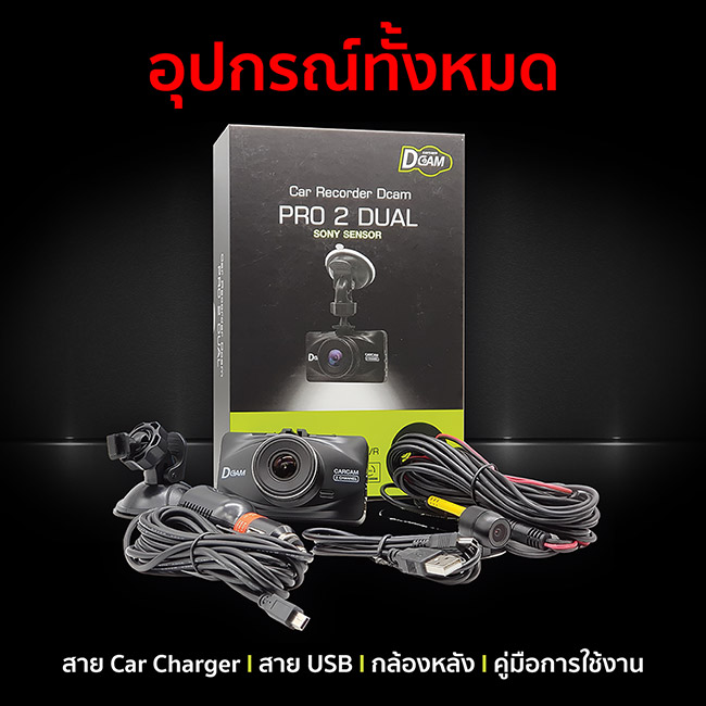 Dcam Pro 2 Dual กล้องติดรถยนต์บันทึกหน้าและหลังพร้อมกัน ใช้ต่อเป็นกล้องถอยหลังได้ ประกันศูนย์ไทย 1 ปี บันทึกกล้องหน้าหลังพร้อมกัน มุมมองกว้าง 160 / 90 องศา หน้าจอชัดสว่าง 2.7 นิ้ว เมนูภาษาไทย ใช้งานง่ายและเสถียรกว่ากล้องหิ้ว